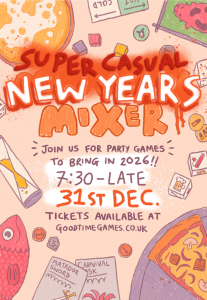 Bring in the New Year with some fun gaming and good vibes, our super casual New Years Mixer is the perfect way to celebrate if you’re looking for something chill and, well, super casual. This event will be focused around lightweight and social games for an easy-going atmosphere. Come with friends or roll solo, you’ll be laughing with a full table in no time!